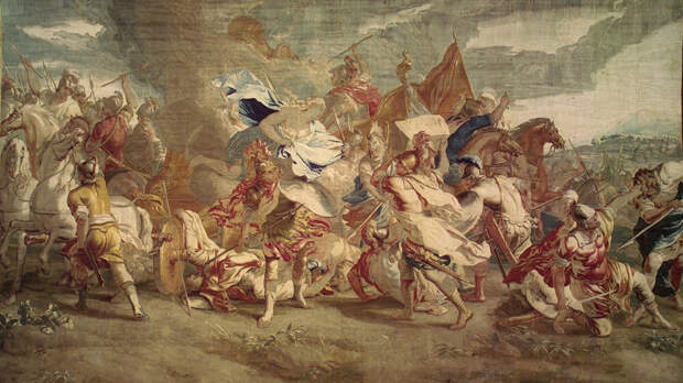 К числу наиболее ценных произведений относится и брюссельская шпалера конца XVI века «Триумф Помпея».Выставка наглядно демонстрирует смену художественных лидеров в шпалерном производстве. Если в XVI веке доминировали южнонидерландские центры вроде Брюсселя, то к началу XVIII столетия законодателем стиля стала французская Королевская мануфактура Гобеленов, основанная в 1667 году. Именно ее продукция оказала огромное влияние на все европейское производство, а фамилия Гобелен стала нарицательным названием для шпалер.