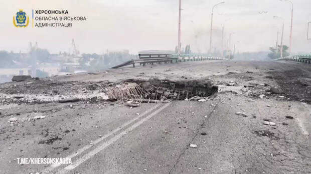 ВКС РФ поразили авиабомбой ФАБ-3000 автомобильный мост в Херсоне, который использовали ВСУ для обеспечения логистики. Кадры поражение моста опубликовал telegram-канал «От Мариуполя до Карпат». Атака была неожиданной, так как на этом участке фронта наблюдалось затишье. Мост сильно пострадал, но проезд по нему всё еще возможен.Атака на мост в Херсоне. Видео: телеграм-канал «От Мариуполя до Карпат»
